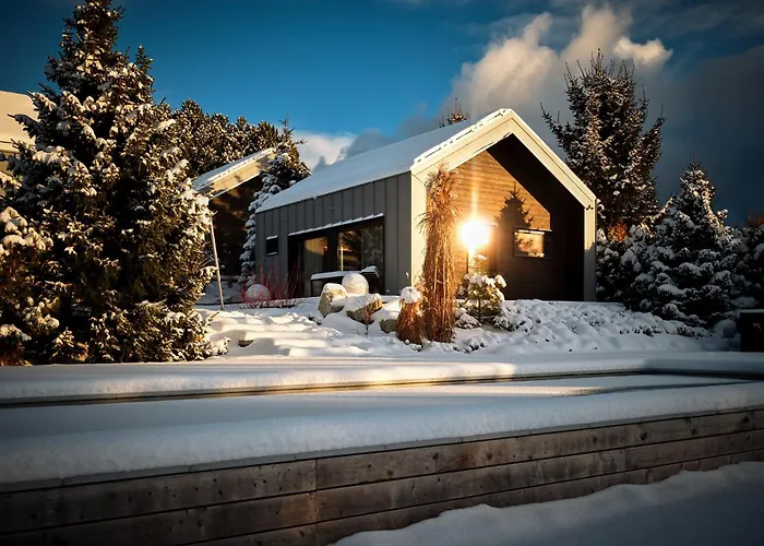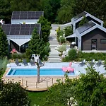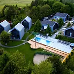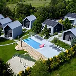 Skarpa Resort别墅距离尤斯托尼莫斯基市中心有10分钟的步行路程,还配有游泳池. 它包括8间配有沙发,咖啡/茶设施 和有线电视能点播电影的房间以及带微波炉,电热水壶 和咖啡壶/茶壶的设施齐全的厨房.